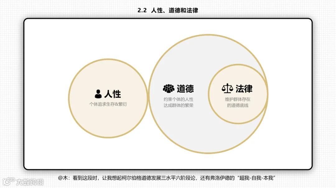 @木:看到这段时,让我想起柯尔伯格道德发展三水平六阶段论,还有弗洛伊德的“超我-自我-本我”
