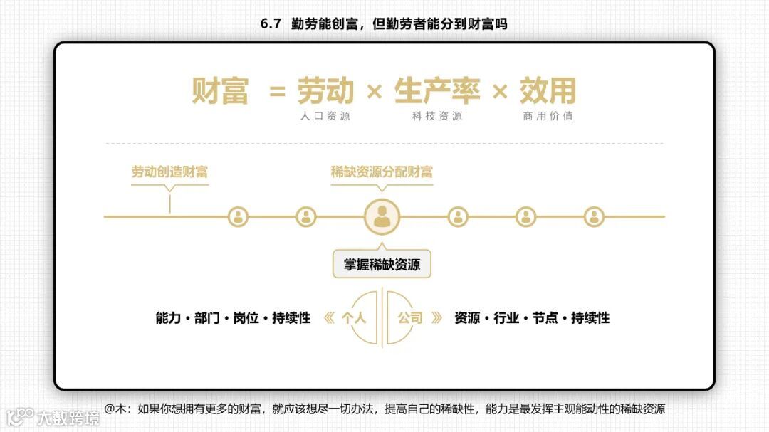 @木:如果你想拥有更多的财富,就应该想尽一切办法,提高自己的稀缺性,能力是最发挥主观能动性的稀缺资源