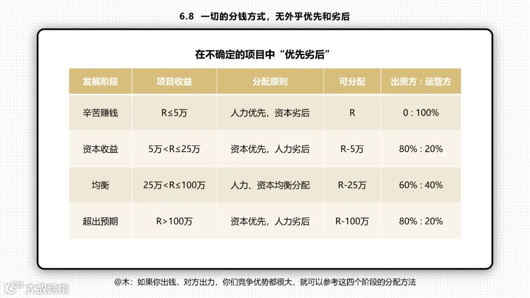 @木:如果你出钱,对方出力,你们竞争优势都很大,就可以参考这四个阶段的分配方法