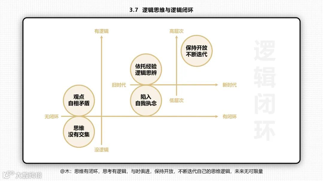 @木:思维有闭环,思考有逻辑,与时俱进,保持开放,不断迭代自己的思维逻辑,未来无可限量