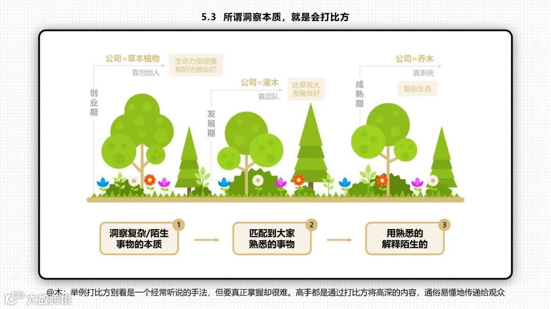@木:举例打比方别看是一个经常听说的手法,但要真正掌握却很难。高手都是通过打比方将高深的内容,通俗易懂地传递给观众