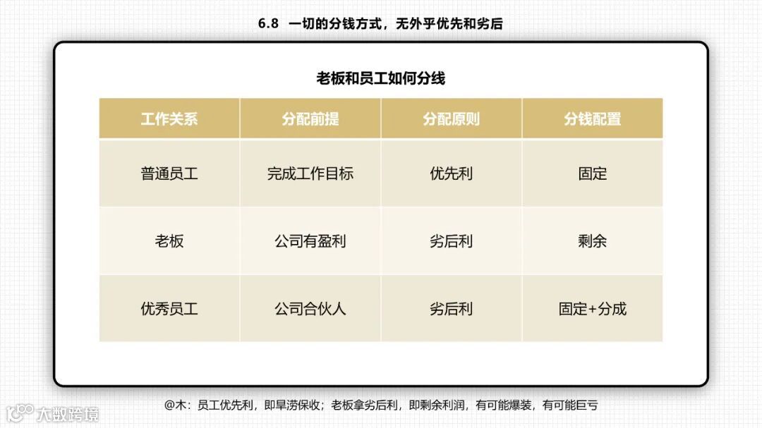 @木:员工优先利,即旱涝保收;老板拿劣后利,即剩余利润,有可能爆赚,有可能巨亏