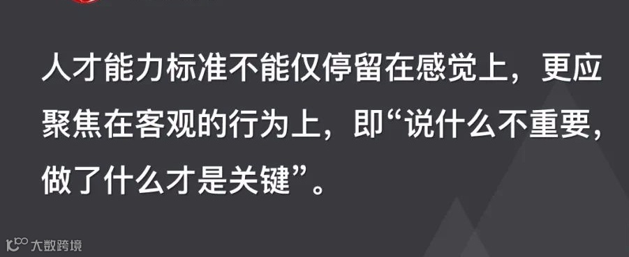 由此,人才能力标准不能仅停留在感觉上,更应聚焦在客观的行为上,即“说什么不重要,做了什么才是关键”。