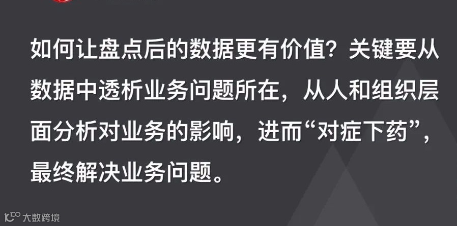 如何让盘点后的数据更有价值?关键要从数据中透析业务问题所在,从人和组织层面分析对业务的影响,进而“对症下药”,最终解决业务问题。