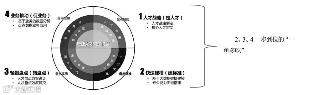 可以,我们把它叫做“一鱼多吃”模型。“一鱼多吃”让建标准、施盘点、促业务一步到位,在培训中同步实施盘点和人才辅导,加速人才成长。