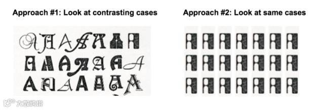 它是这样实现的:比如说我们想解构字母A,并想理解使A成为A的深层次原理。再比如说你可以用两种方法完成它。