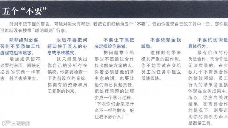 这套方法包含了一系列简单有效的原则,我们称之为“聪明原则”。它们可以帮助经理人充分调动下属员工的技能和智慧。