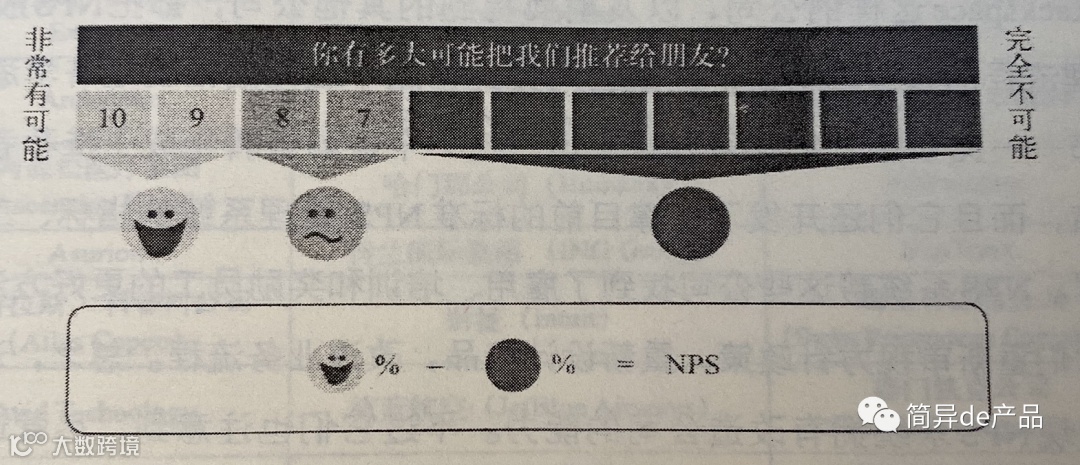 将打10分、9分的用户百分比,与打6分-0分的用户百分比做减法,就可以得出你公司的NPS指标。