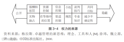 即使在追求分权化的今天,权力仍然是大多数组织运转的基础,那些懂得运用权力的领导者往往比蔑视、不会用权的人更容易获得成功。对权力的来源按照从公开到隐蔽的顺序进行排列,结果如图3-4所示。