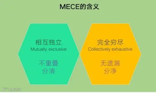 MECE是英文Mutually Exclusive Collectively Exhaustive,翻译过来是相互独立、完全穷尽。