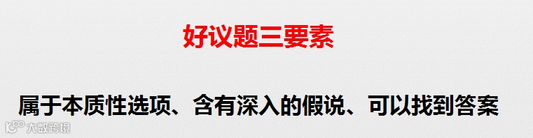 比如,一家企业发现产品销售不畅,原因可能包括产品质量不佳、销售渠道未打开、销售人员能力不佳等等方面,那么究竟哪个才是真正核心的议题呢?或者说如何判断一个议题是不是个好议题呢?