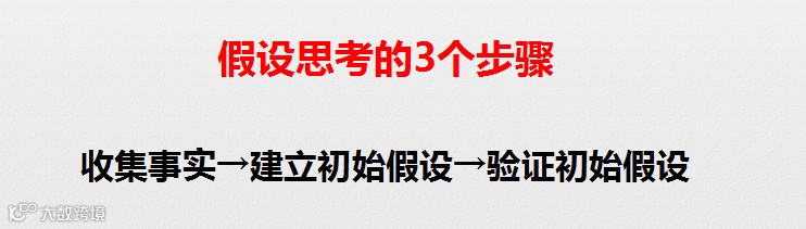 假设思考的三个步骤为:收集事实→建立初始假设→验证初始假设。
