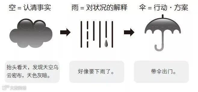 这其实是对事实、分析和行动三者的比喻。