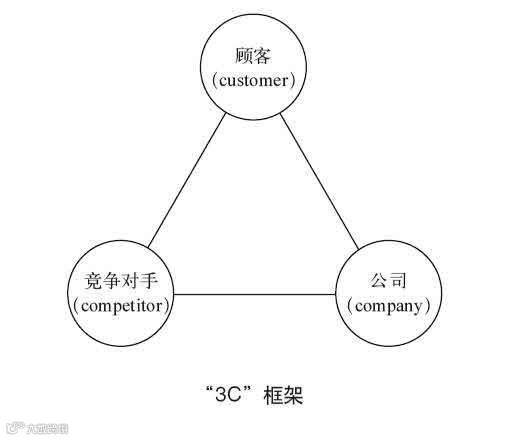 “3C”取自于顾客(customer)、竞争对手(competitor)、公司(company)这三个要素的英文首字母。该框架是“通过分析自己公司现在所处的经营环境,灵活地开发经营课题、制定战略等”,并非单纯用于明确自己公司的情况。