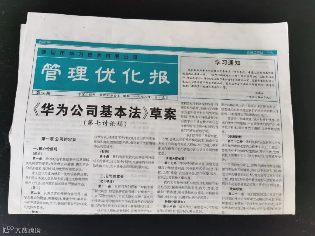 华为的前几年,任正非忙于开疆拓土,无暇顾及组织建设。但是,随着队伍的扩大,“公司内部的思想混乱,主义林立”。于是,著名的《华为公司基本法》于1998年诞生了,使华为人的所有行为,都变得“有法可依”。