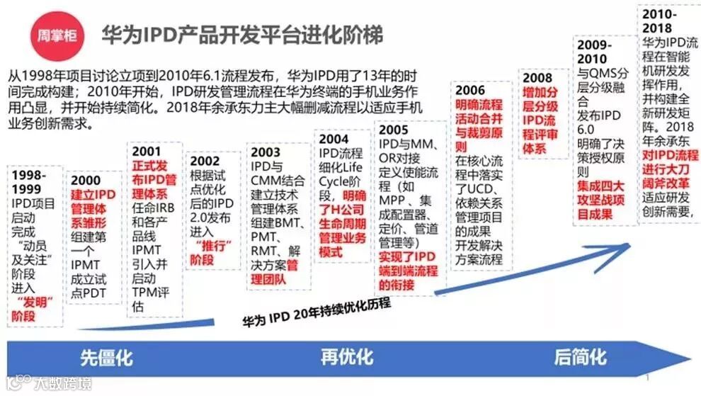 华为管理经过1987-1995年的草创阶段、1995-1998年的基本法阶段之后,就进入了流程化阶段。