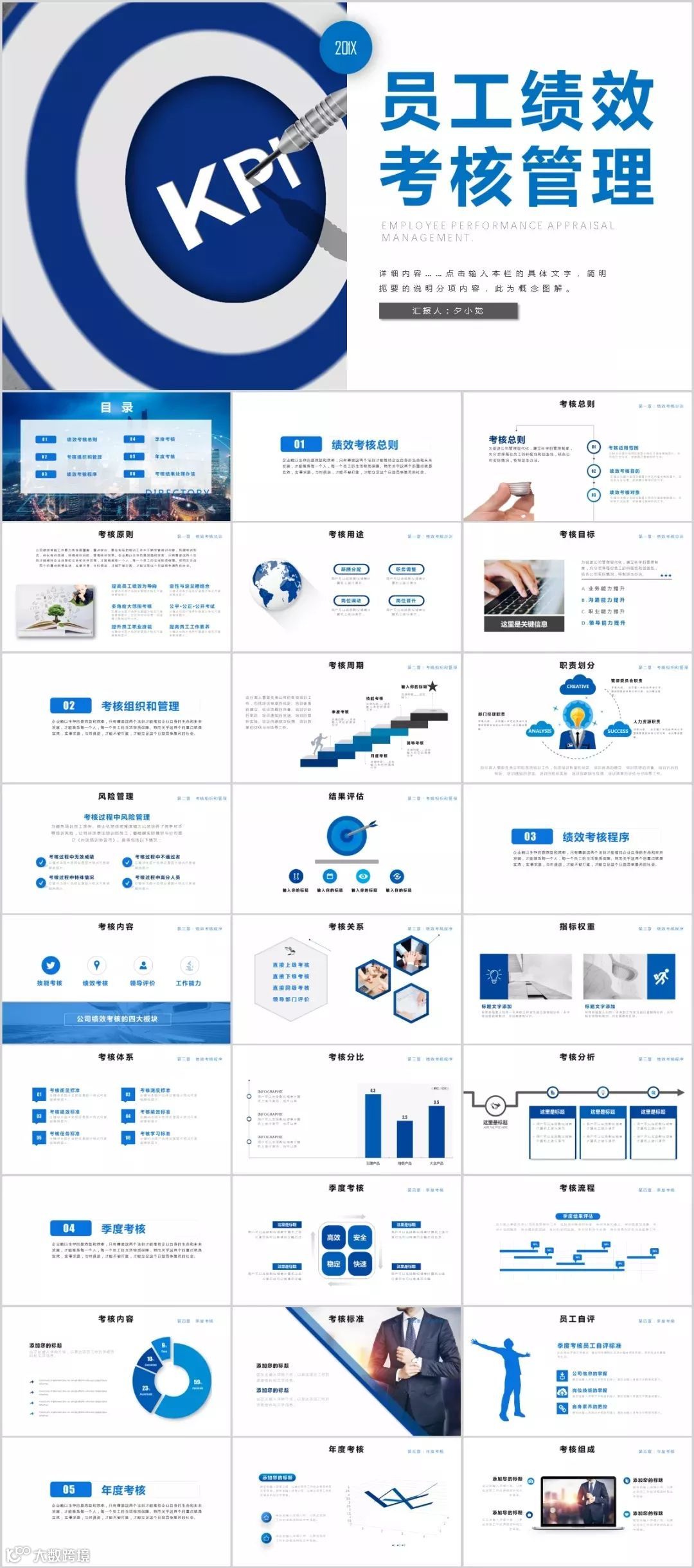9份PPT无LOGO,可编辑,制作精美,内容丰富。适合自学,以及做绩效管理政策宣导。