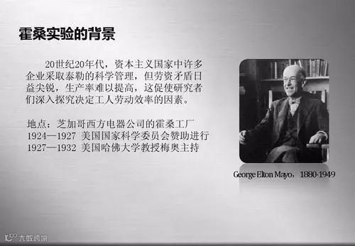 但是让厂长感到困惑的是,工人们的生产积极性却并不高,产品销售也是成绩平平。为找出原因,他向哈佛大学心理学系发出了求助申请。哈佛大学心理学系在梅奥教授的带领下,派出一个专家组对这件事展开了调查研究。