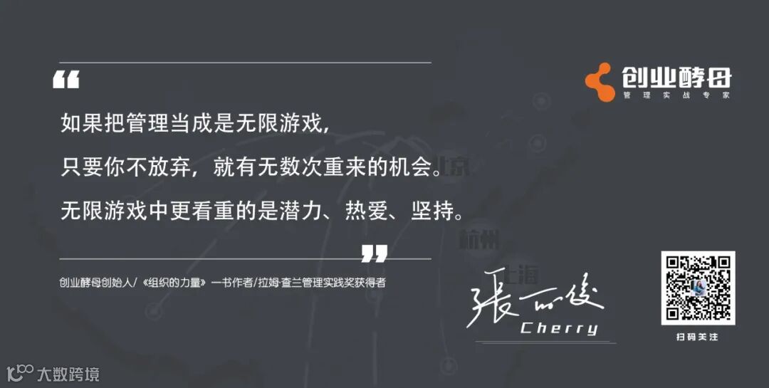 如果把管理当成是无限游戏,只要你不放弃,就有无数次重来的机会。所以,无限游戏中更看重的是潜力、热爱、坚持。