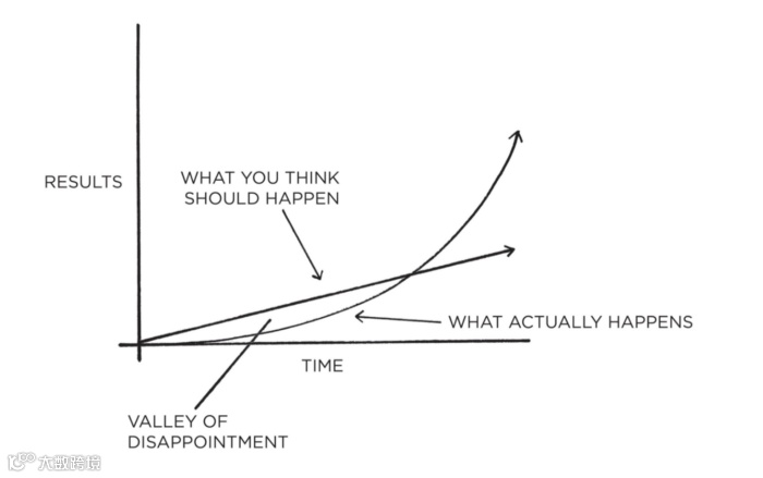 作者解释说,一个人需要用把习惯坚持足够长的时间来突破这个高原,才能看到自己因为习惯而发生的变化。