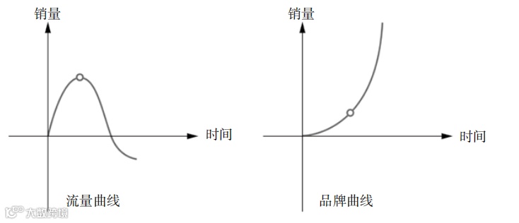 品牌曲线开始的时候比较慢,逐渐积累后,品牌势能转变为销量,经过从量变到质变的拐点之后,销量就会迅速上升。