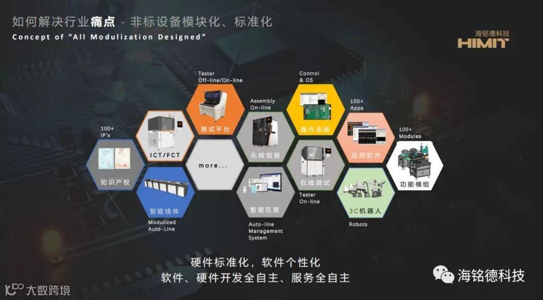 海铭德短短五年,执着于基础技术的开发,利用我们模块化的技术平台,成功实现了多领域、多场景、多平台的产品布局。我们形成了100多个产品模组,100多个软件APP,在消费类电子、医疗电子、汽车电子、安防电子、半导体、柔性线路板、PCBA等行业得到充分应用,这充分说明了我们的模块化技术的柔性化优势,其应用场景相当广泛,充满活力。