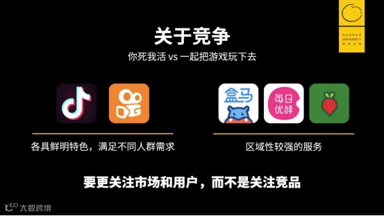 比如短视频领域,大家经常会问,抖音是不是可以把快手干掉?但如果你理解真正的竞争,就会发现或想通,抖音和快手是各自具有鲜明特色的,而且满足的是不同人群的需求,因此长期来讲一定是两家并行的格局。
