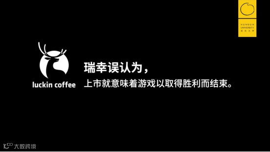 为什么会这样?瑞幸误认为对于一家企业来讲,上市就意味着游戏以取得胜利而结束。我揣测它为什么数据要造假,无非是要取得一些好的成绩,但是上市对于企业来说其实只是发展的一个阶段而已,并不是游戏就结束了。