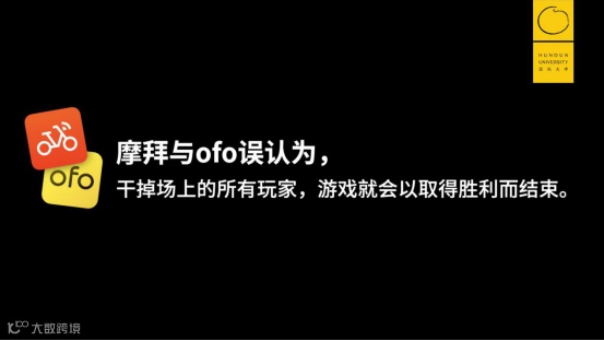 摩拜和ofo会有一种错觉,误认为只要我干掉了场上的所有玩家,游戏就会以我取得胜而结束。可实际上不是这样。虽然场上玩家可能都被你干掉了,你认为游戏结束了,但是场外还有人啊,有人排队等着进场呢,对他们来说游戏一直没有结束。