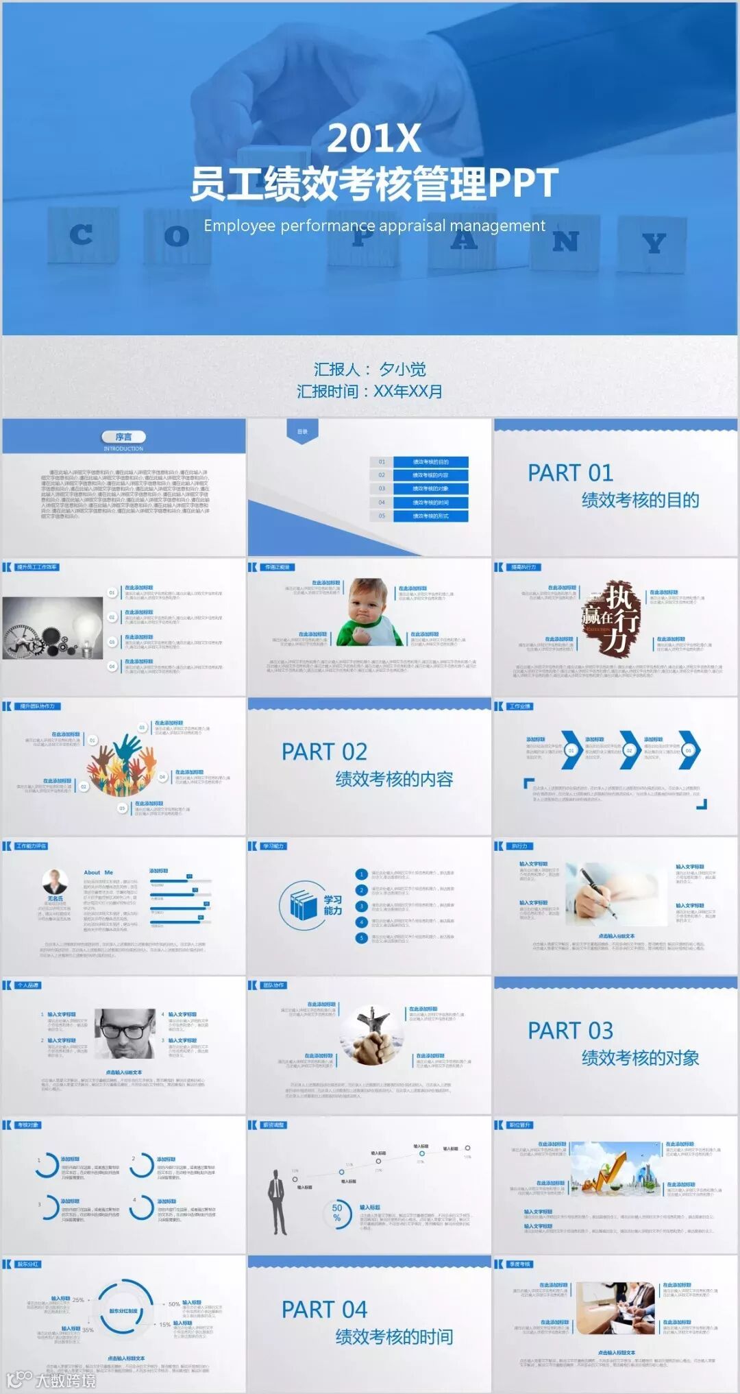 9份PPT无LOGO,可编辑,制作精美,内容丰富。适合自学,以及做绩效管理政策宣导。