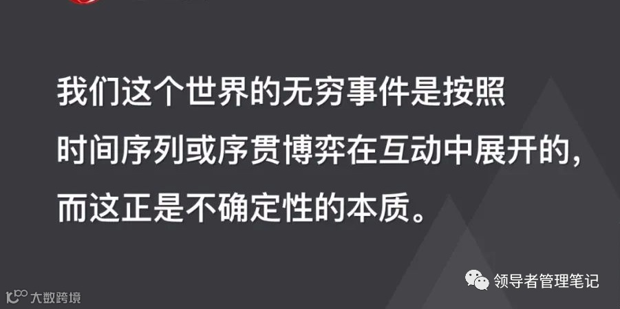 不确定性是世界按照序贯博弈展开的结果,序贯博弈是按照时间序列展开的,即面对下一个时刻或轮次的无限可能展开的,每一个可能都有可能给世界带来结构性变化。