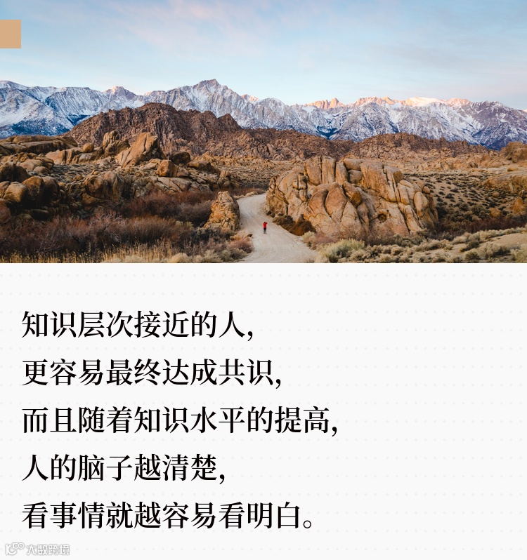 知识层次接近的人,更容易最终达成共识。而且,随着知识水平的提高,人的脑子越清楚,看事情就越容易看明白。