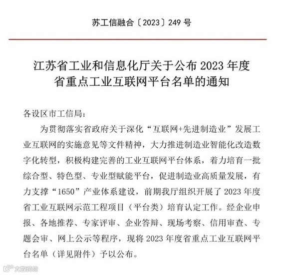 江苏省重点工业互联网平台属于江苏省工业互联网示范工程的一部分,遵循“大企业建平台、中小企业用平台”思路,积极推动综合型、特色型、专业型工业互联网平台向各地深耕,进一步推进工业互联网建设和应用。