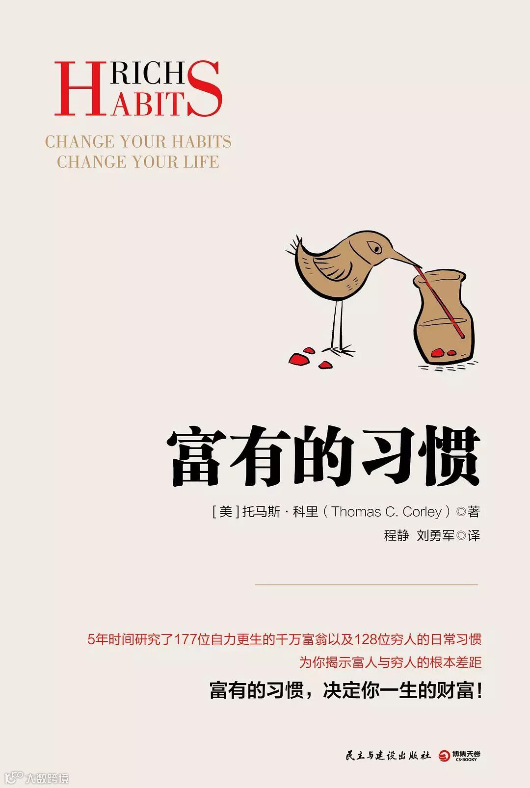 今天跟大家分享的书籍是《富有的习惯》,日常习惯在很大程度上决定了人们生活成功或失败的程度。很多内容都是老生常谈,但有一点很值一提,你需要重新梳理自己的日常习惯,从长期的角度来多积累好习惯,减少坏习惯。