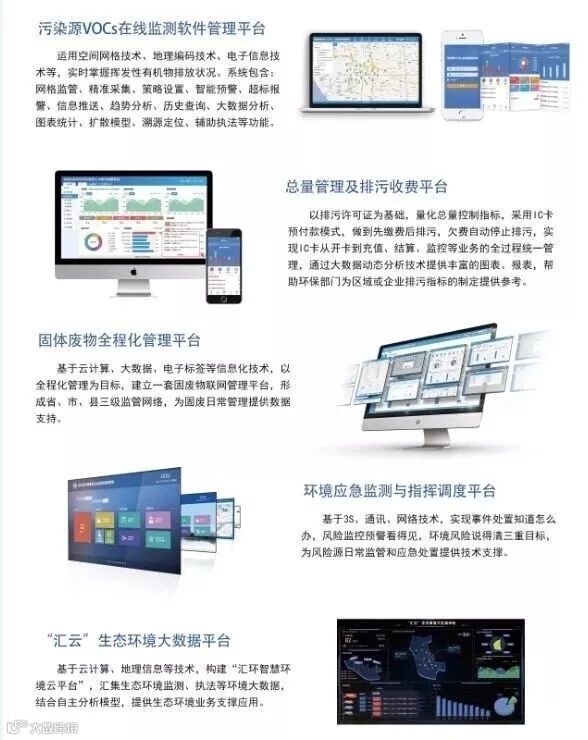 公司已建成并成熟运营环境大数据与智慧环保平台,集污染源全过程监控、生态环境监控预警、生态环境监察执法、河长制综合管理、总量管理与IC卡排污收费、环境设备运维管理、环境事故应急指挥、固废全程化管理、环境地理信息、环境数据中心等多个系统为一体,实现环保大数据管理的科学化、精准化、便捷化!