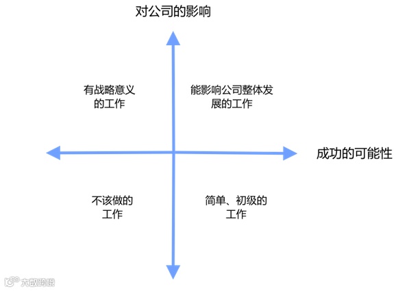 工作中所有的项目和任务都有存在价值,也会对公司的发展产生相应的影响。一些项目可以明确量化,比如日活用户数量,有些则相对比较模糊。它们都可能带来成功。有些可能会更容易成功,有些则很难成功。