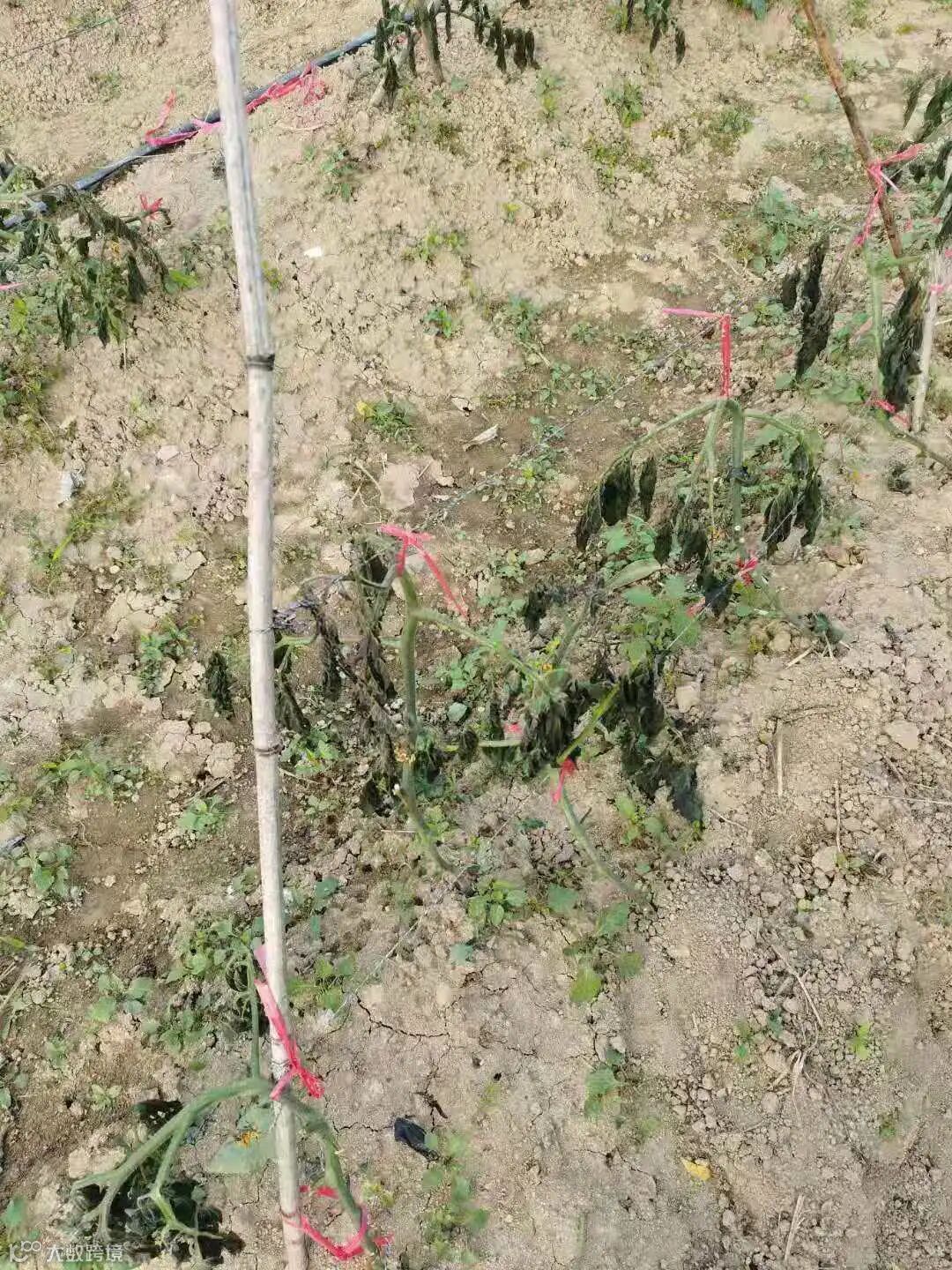 还有被冻坏的番茄苗,只能从完好的番茄藤上剪下合适的枝条来扦插种植,等待其重新生长。