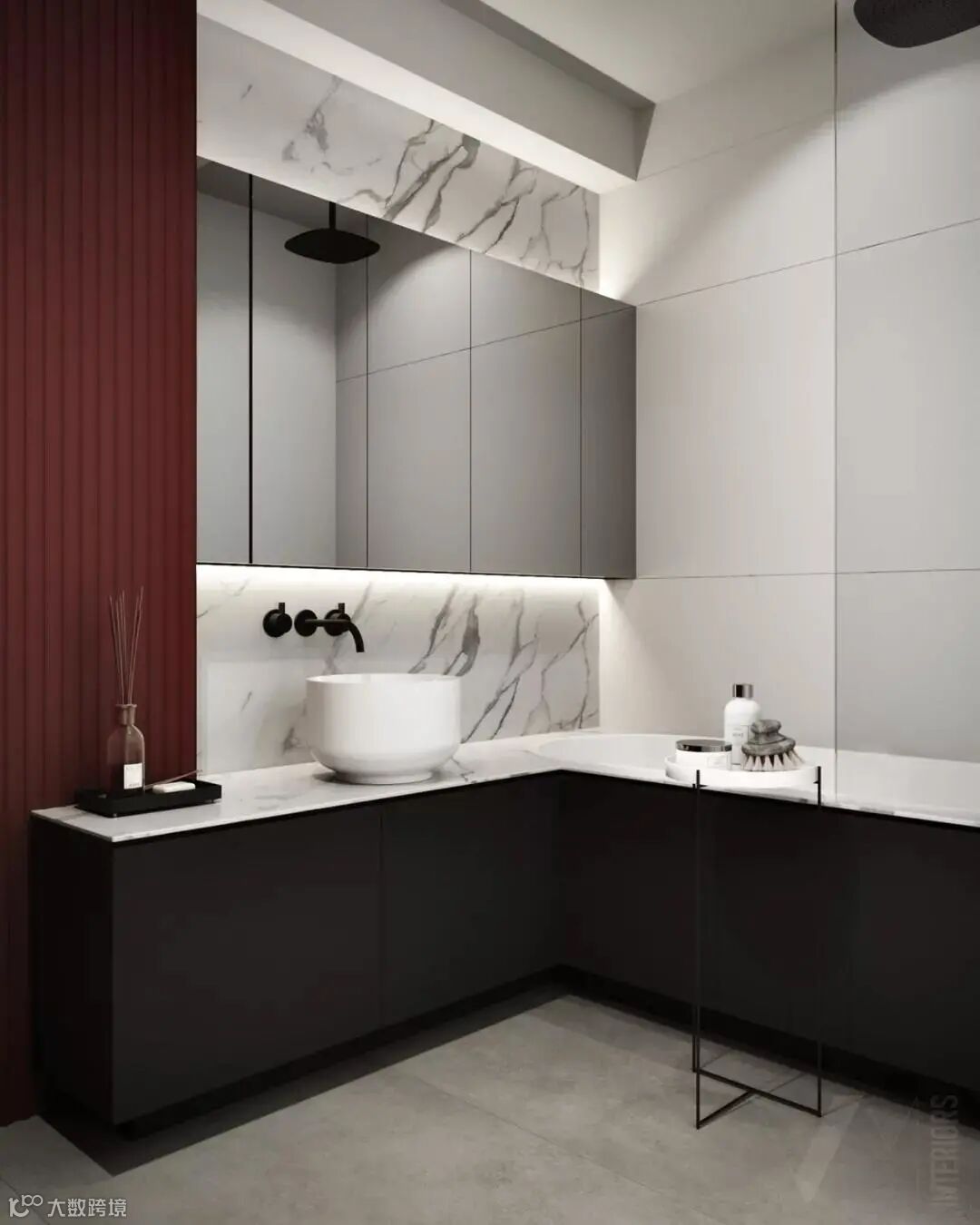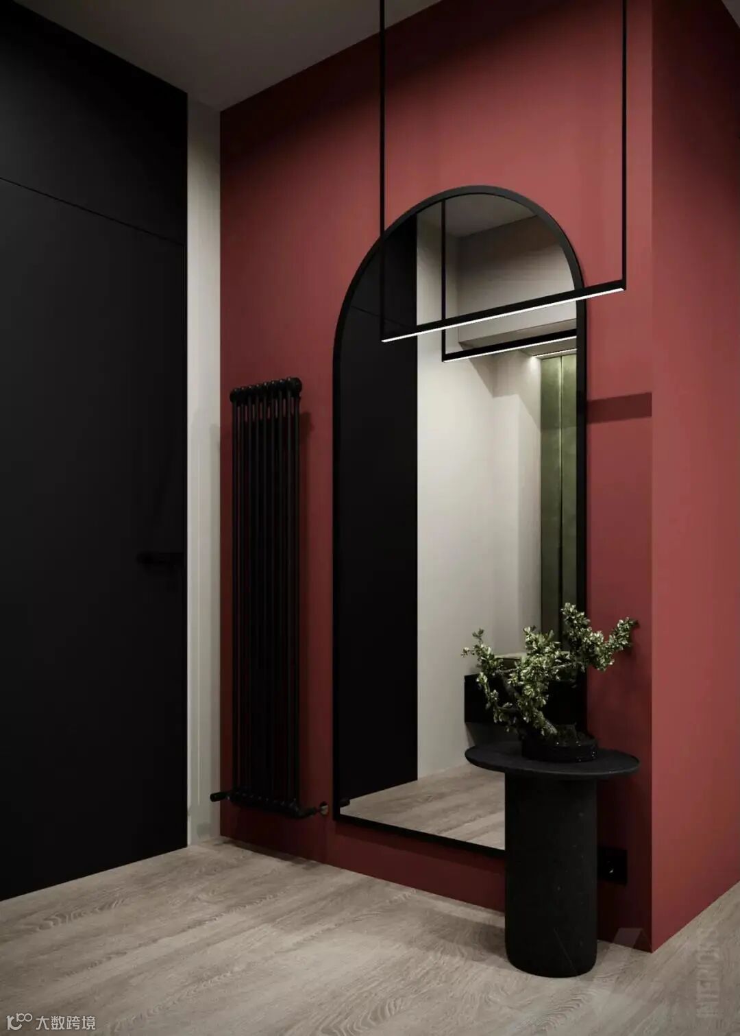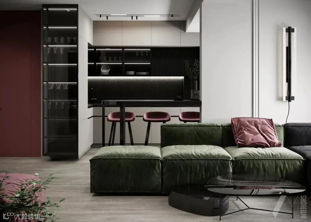红与黑是所有色彩搭配中最经典的组合。红的激情热烈、黑的沉浸冷酷,在碰撞中阐述空间情节,与周围的白灰搭配,也有了个性与风格。