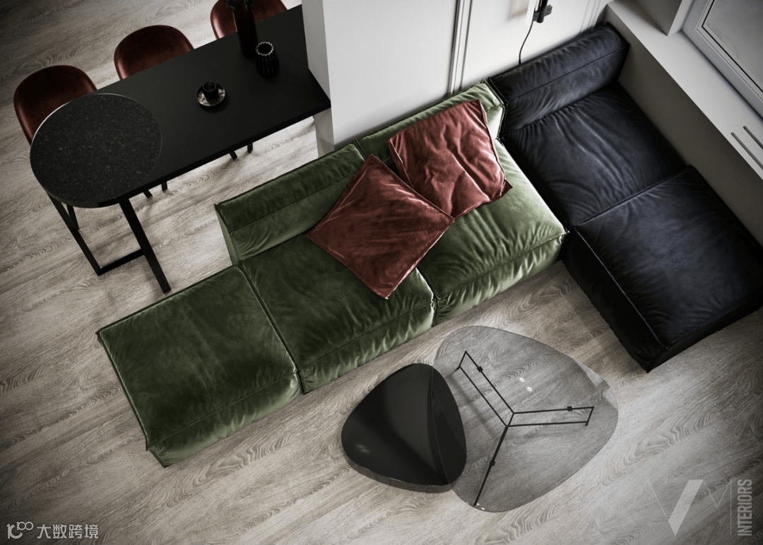 项目解读:室内面积共86㎡,一室一厅,设计师以经典的黑白色系来搭配复古的红绿,打造出别具一格的设计风格。