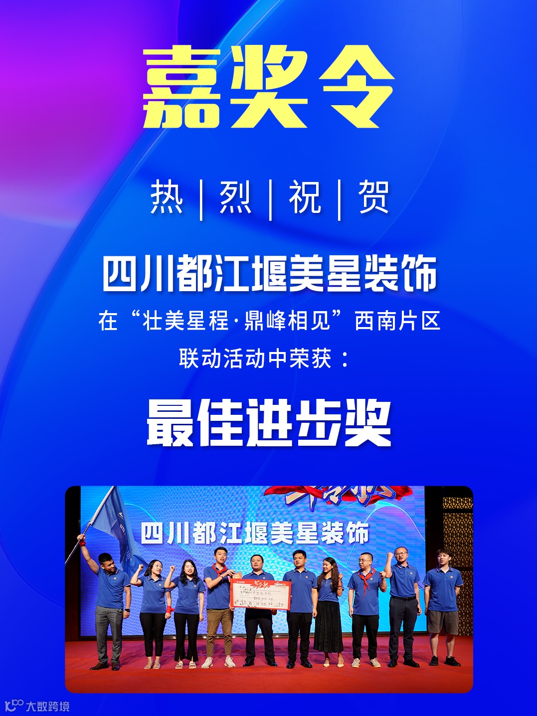 四川都江堰美星装饰、四川简阳美星装饰、两大精英团队凝聚团队力量,以进步诠释担当,以拼搏诠释责任,在本次活动中取得优异成绩,获得最佳进步奖。