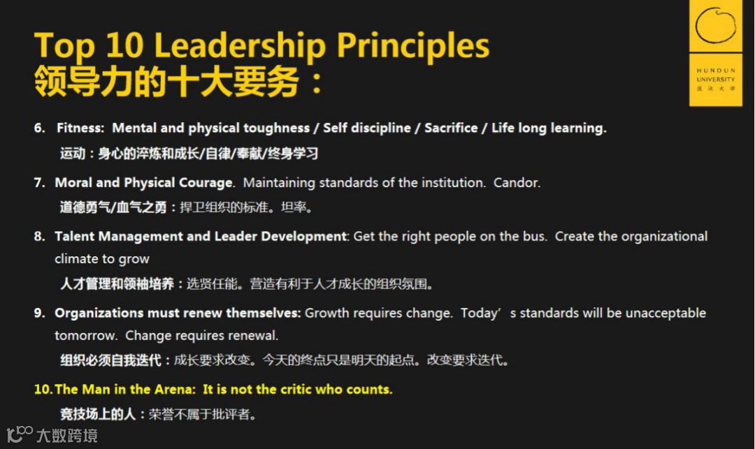 很高兴与大家分享我理解的领导力,希望你们能从以西点军校为背景的领导力讲述中学到一些东西,特别是卓越、品德和激情,因为我本人特别信奉这三种特质。希望你们喜欢。
