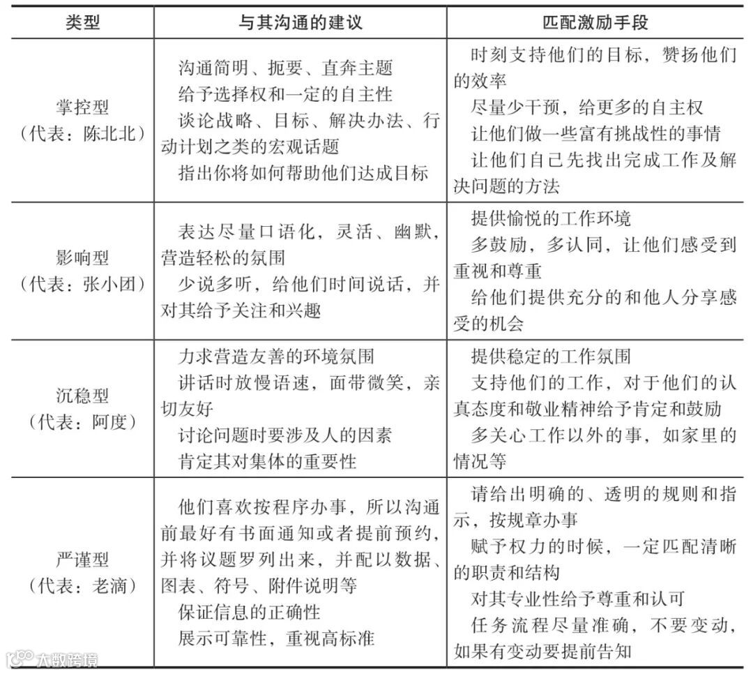 对于团队领导来说,只有充分了解下属,才可以做到知人善任,人尽其才。以下是针对四种不同人才的具体沟通建议和激励手段: