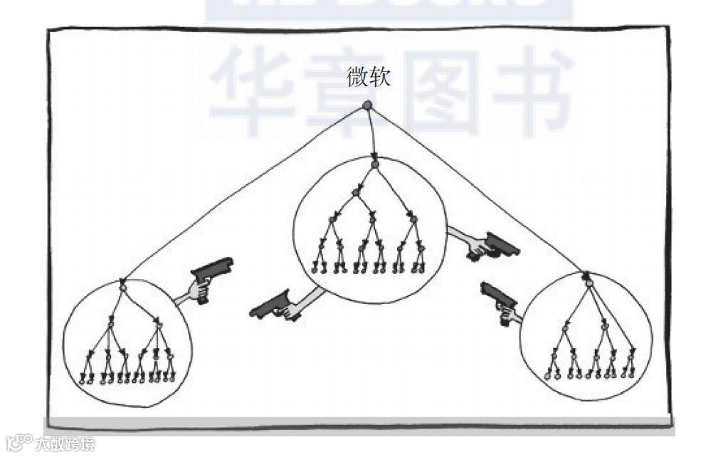 曾经实现这一制度的微软,在网络上广泛流传着一张描述其内部部门间氛围的组织结构图。