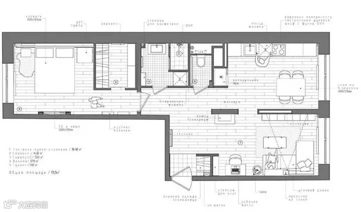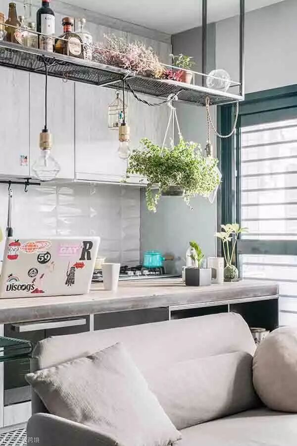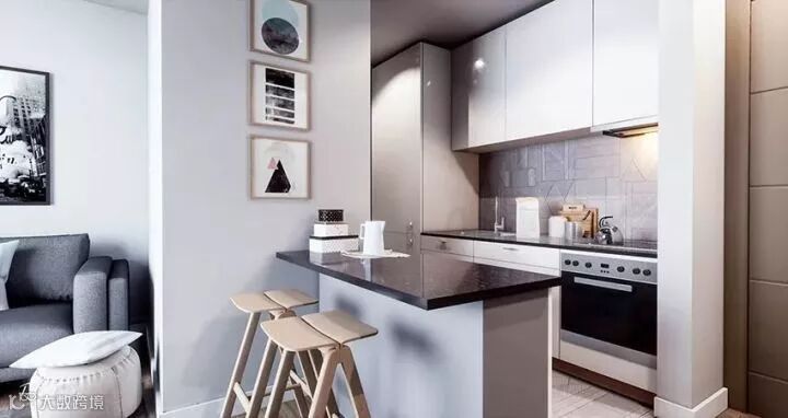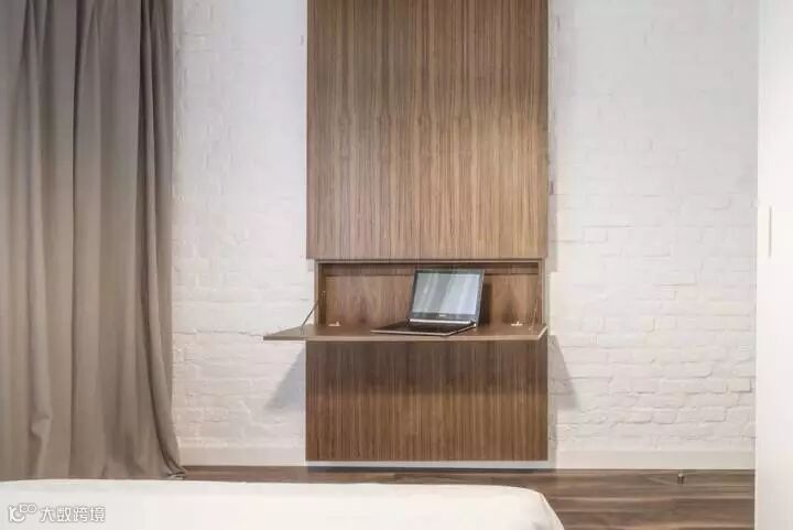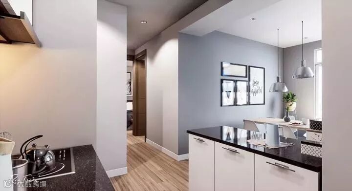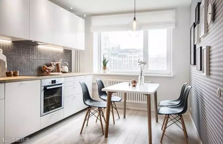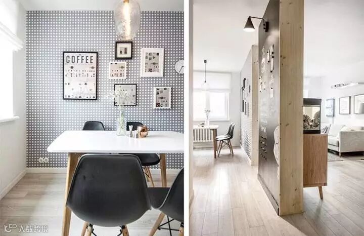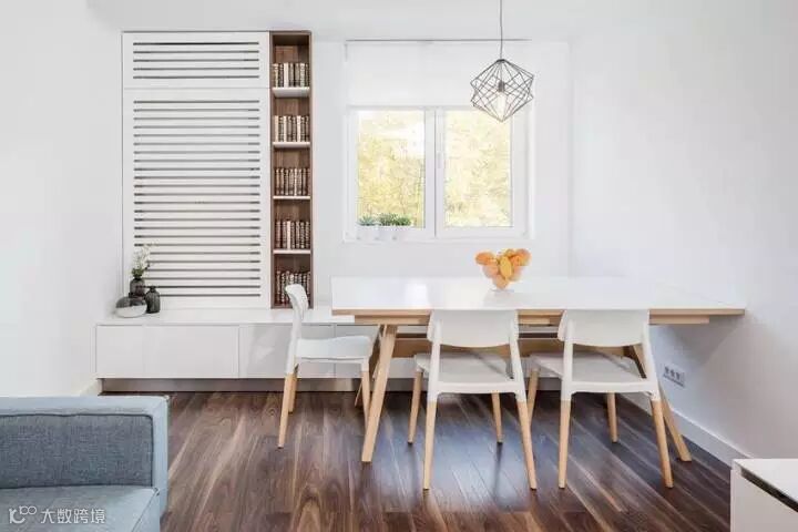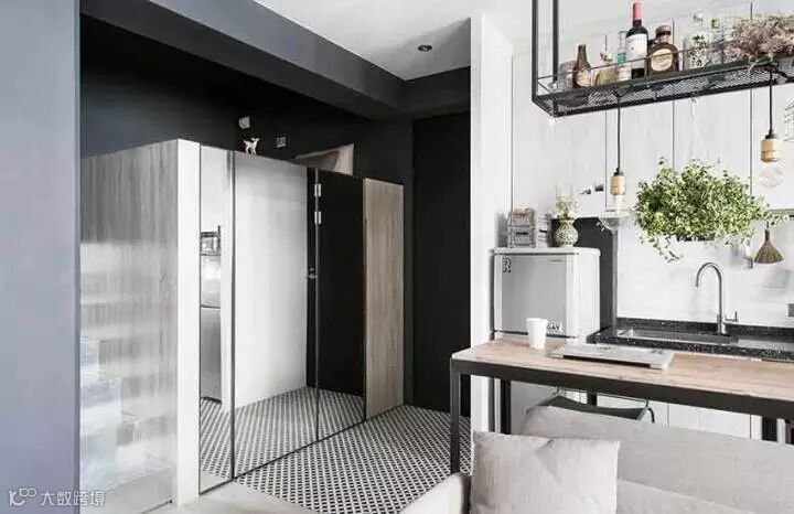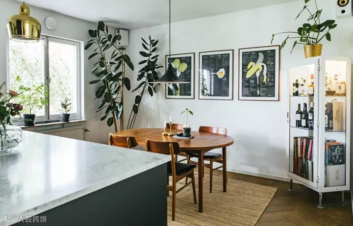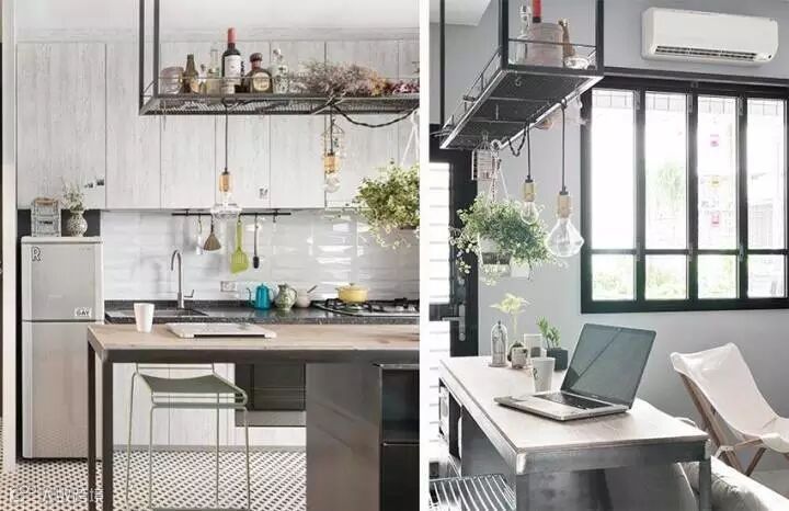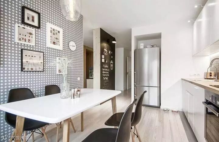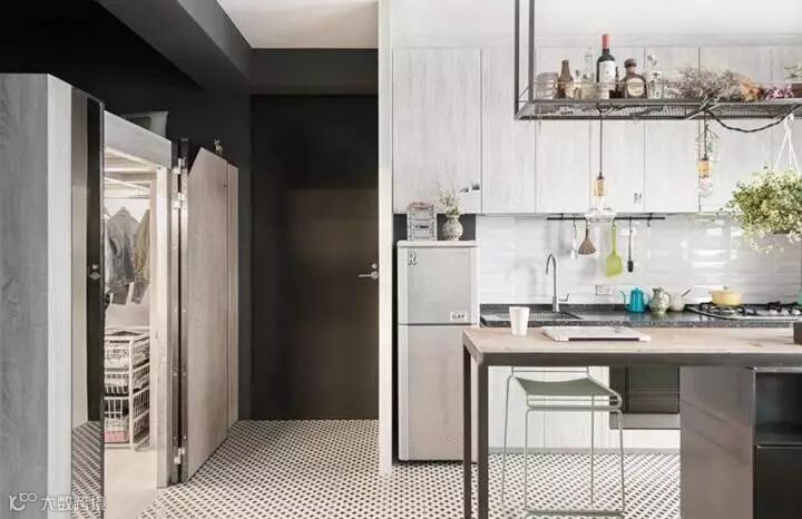 很有趣的是,这套设计中的客厅里不包含电视,而是一个餐桌,所以设计这种东西是需要跟着屋主人的需求走的,没有什么“必须有”这种说法,你想过什么样的生活就设计成什么样子。加上这本身就是一个小户型,考虑到“最常使用”才是最关键的,学习好这一点,抛开传统设计配置,未尝不能给你带来一个全新的感受。