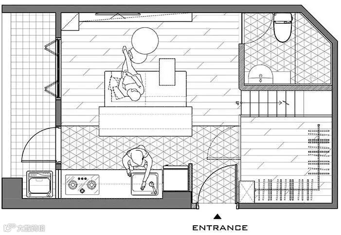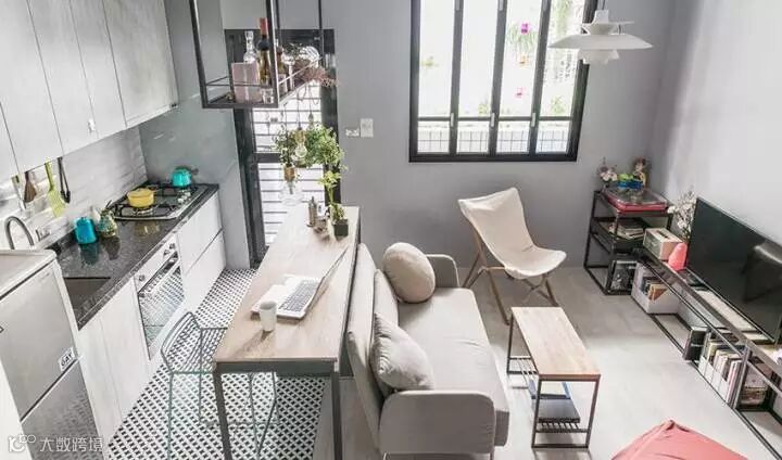 只要功能设计到位小户型不是问题,但是需要注意的是,在这种超小户型中,要学会做减法,要清楚哪些生活区域是可以不要的。在这套设计中,设计师采用了纵向思维,使得这个仅30平米的空间五脏俱全,而且看着并不是那么拥挤。