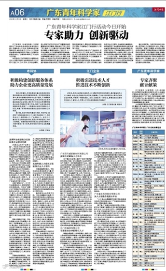 2020年12月9-11日,由广东省科协主办的2020年广东中青年科学家江门行活动如期举行。39位中青年专家、科技工作者深入江门市企事业单位开展人才技术需求对接服务,我司专家受邀出席活动。
