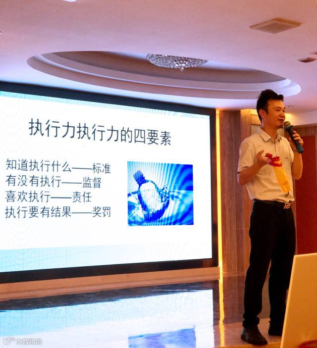 如何才能高效地把工作开展?执行力!如何才能把业绩提高?执行力!如何才能把品牌影响力做大做强?执行力!集团营销管理中心广东海南大区总监关景聪为安徽的同学们带来了提高执行力的课程。他说,提高执行力,必须围绕标准、监督、责任、奖罚四个要素来进行,才能更好地提高工作质量!
