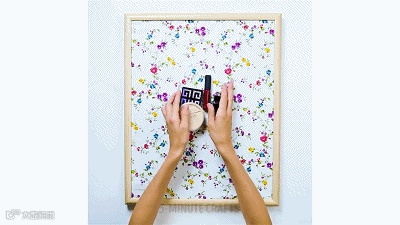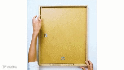 把画框的顶部去掉,然后选择一张素净的装饰纸粘贴在画框上,在画框背部粘好强力胶和一些小铁片,然后帖上墙。
