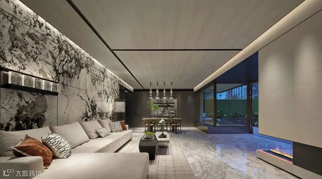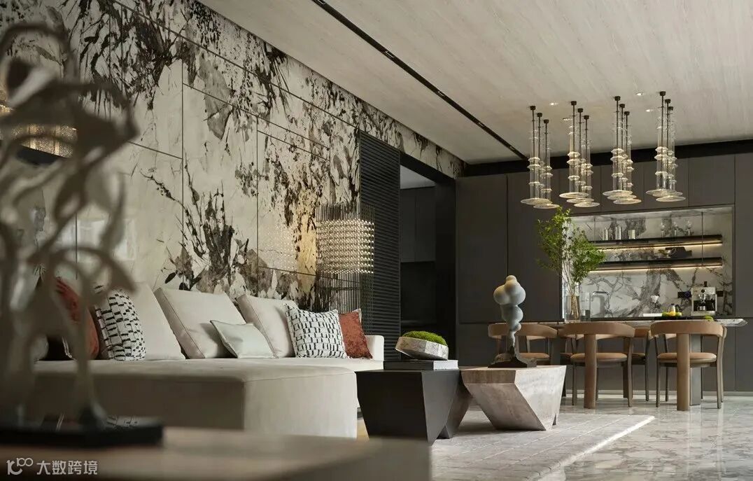 同时,石材本身的纹理巧妙地平衡出空间的艺术氛围,使空间素洁却不单调。这里不仅是一日三餐的飨宴之地,也是家人们聊天休闲的交互场所。