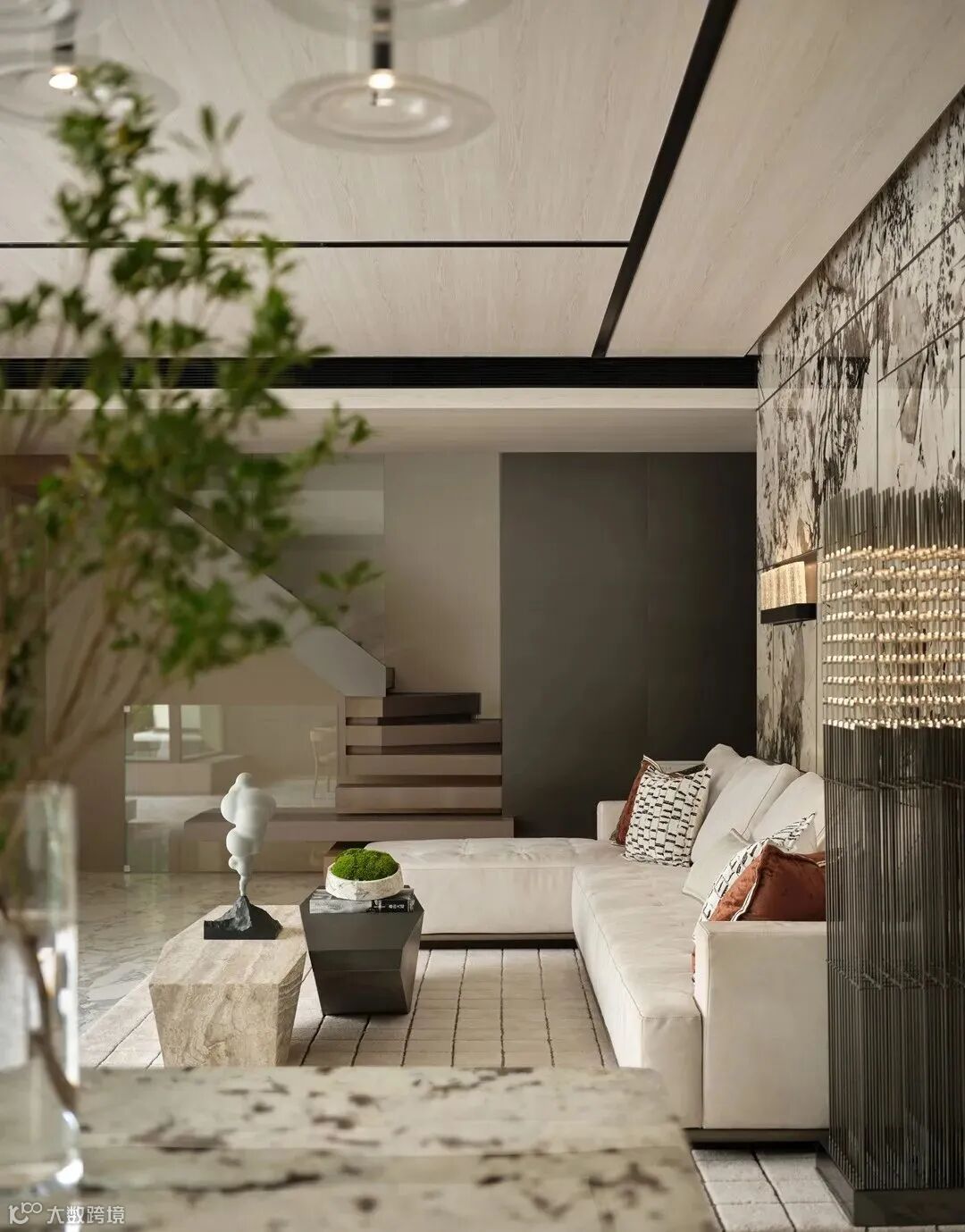 客厅中性色调的家具选择,将沉稳的摩登风格巧妙融入,平衡了整体基调与观感。